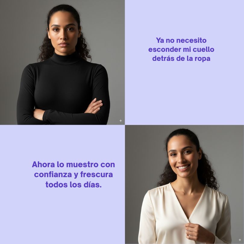 Mi cuello se percibe más definido, suave y radiante. Me siento libre de usar cualquier prenda y mostrarlo con confianza